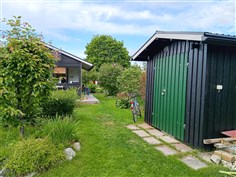 Kolonilott på 350 kvm i soligt läge. På lotten finns 4 större odlingsramar, 2 högre pallkragar samt några mindre och ett växthus på på ca 10 kvm. På tomten finns hallon, fläder, rabarber, jordgubbar, 3 syrenträd, 1 Hästkastanj, 1 Ask, bukettapel häck, Norrlandsschersmin och Snöbollsbuske.