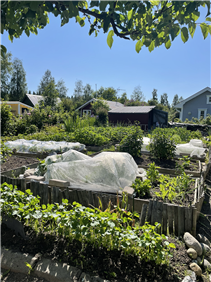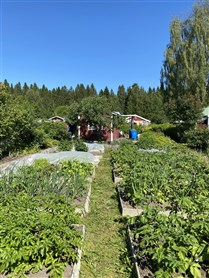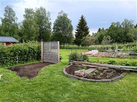 Kolonilott på 350 kvm i soligt läge. På lotten finns 4 större odlingsramar, 2 högre pallkragar samt några mindre och ett växthus på på ca 10 kvm. På tomten finns hallon, fläder, rabarber, jordgubbar, 3 syrenträd, 1 Hästkastanj, 1 Ask, bukettapel häck, Norrlandsschersmin och Snöbollsbuske.